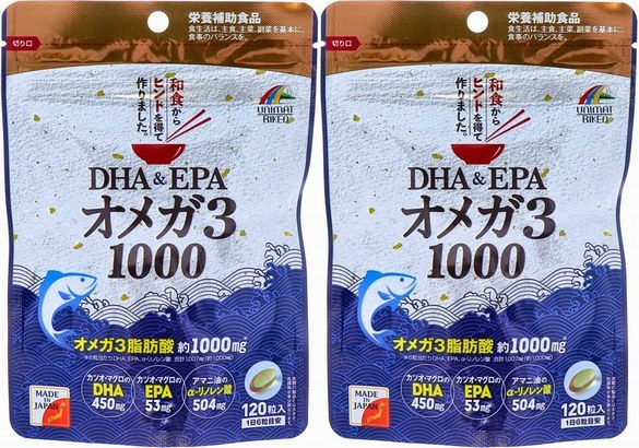 - 2袋(240粒) DHA&EPA オメガ3 1000 120粒入 3つのサラサラ成分「オメガ3脂肪酸」を高配合した栄養補助食品です。