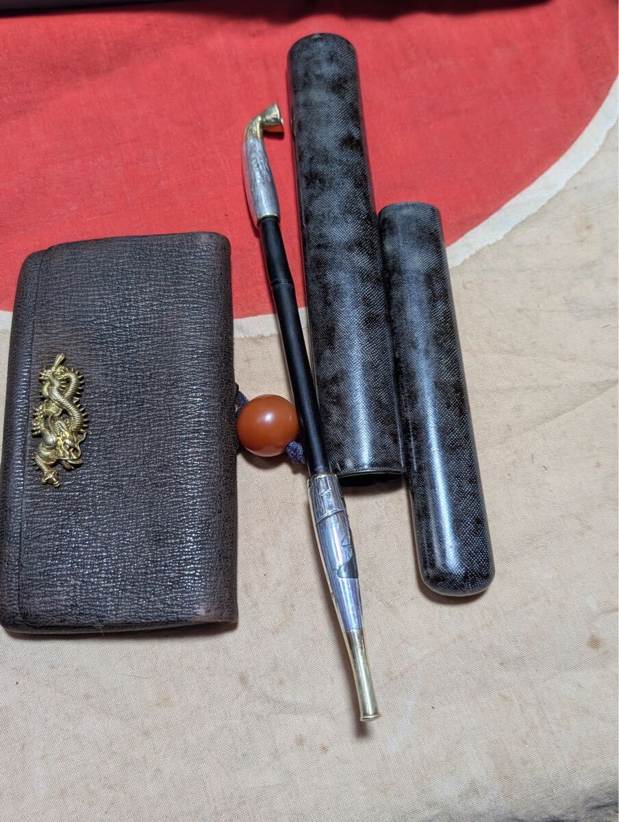 - タバコ入れ キセル 吸い口、頭 金使用 江戸時代 44g キセル 喫煙具 アンティーク キセル入れ 煙草入れ