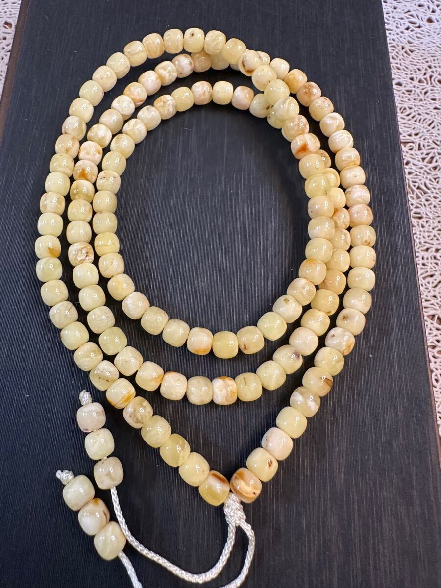 - V-986天然 アンバー 本琥珀 蜜蝋 老蝋 ミルキィ ネックレス兼ブレスレット
