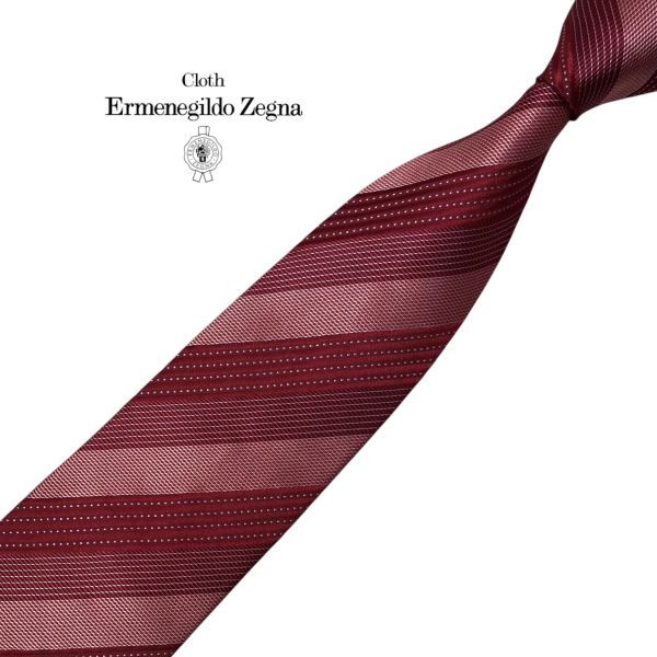 > ★ストライプ柄★高級ネクタイ★Ermenegildo Zegna レッド系 レジメンタル柄 エルメネジルド・ゼニア ネコポス可 USEDプレス済み t1233