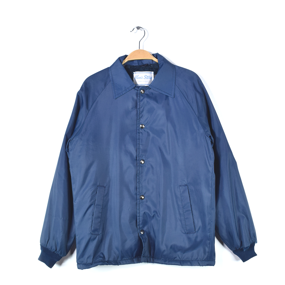 - 【送料無料】70s SEARS MEN'S STORE USA製 ヴィンテージコーチジャケット シアーズ 無地 ネイビー メンズS 古着 @DZ9027