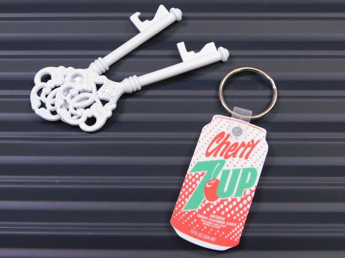 > ◆送料\110◆【7UP・セブンアップ】※《缶型チェリー・ラバーキーホルダー》 89~95年代ロゴ アメリカン雑貨 キーリング