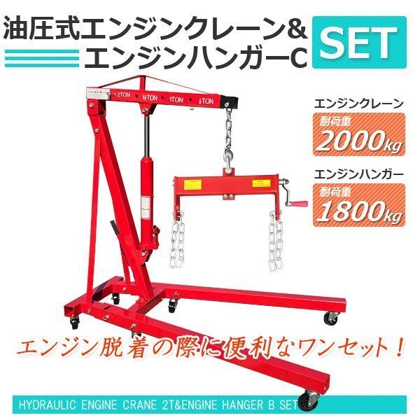 > 【送料無料】エンジンクレーン2t&エンジンハンガー Cセット★エンジンホルダー ハンガー耐荷重 4000LBS/1800kg 折畳エンジンクレーン2t