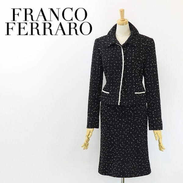 - ◆FRANCO FERRARO フランコフェラーロ テープ使い ネップ ジャケット&スカート スーツ セットアップ 黒 ブラック×ホワイト 1