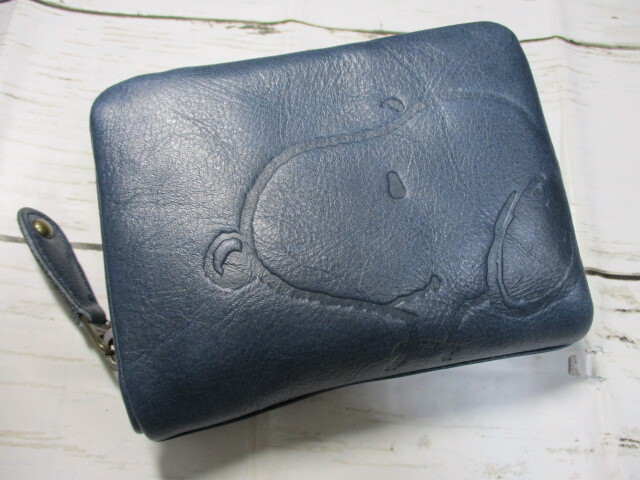 - 新品 スヌーピー 財布 レディース 二つ折り ラウンド SNOOPY 本革 MOTHERS POPなカラーデザイン ネイビー