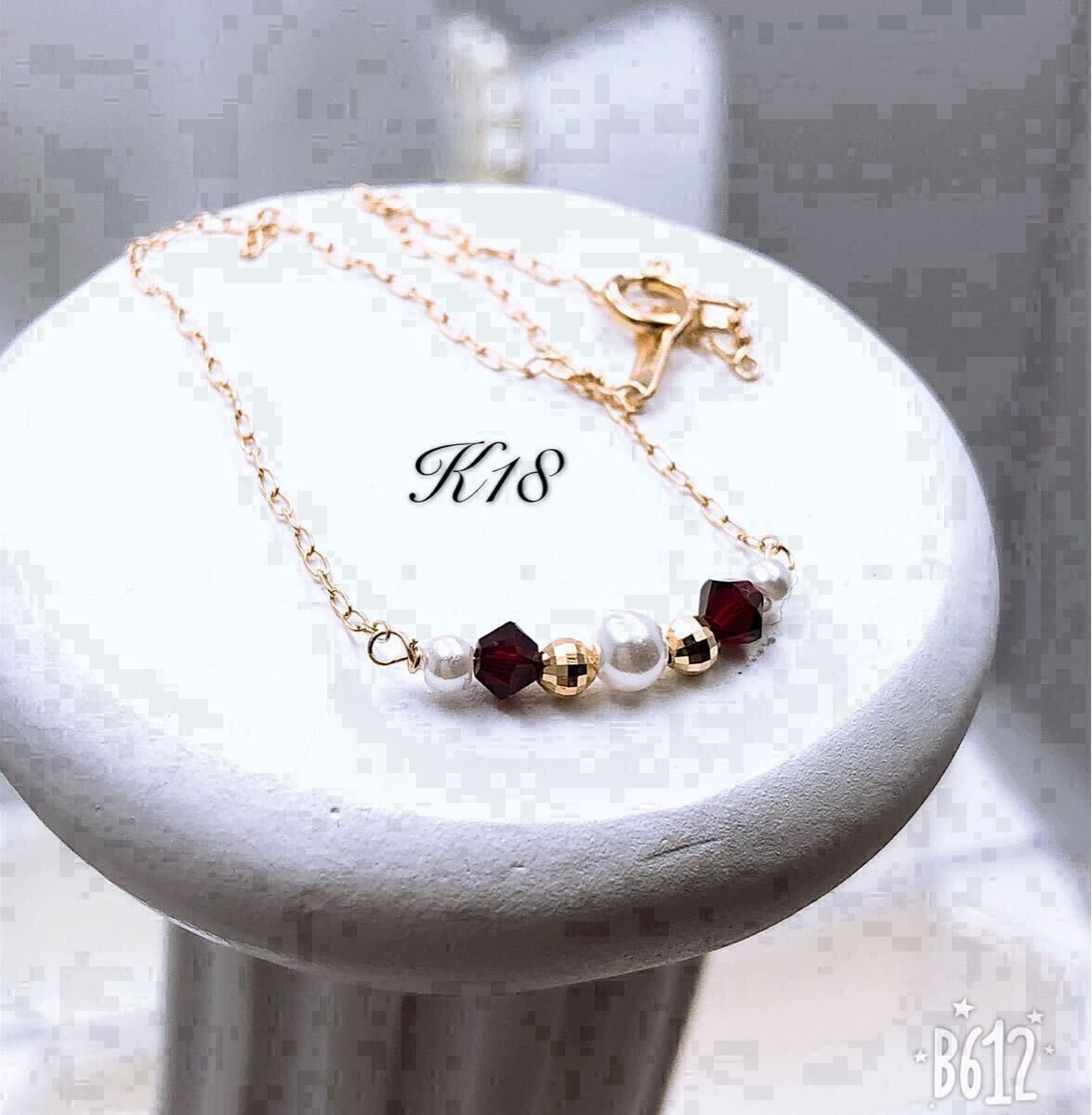 > k18 18金 25cm ガーネット3mm スクリューチェーン0.9mmブレスレット アンクレット イエローゴールド プレゼント ギフト