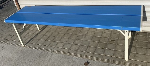 - バネ脚 折り畳みカラーベンチ W150㎝ 青色 高さ40㎝ 奥行40㎝ 引き取り:田川郡香春町