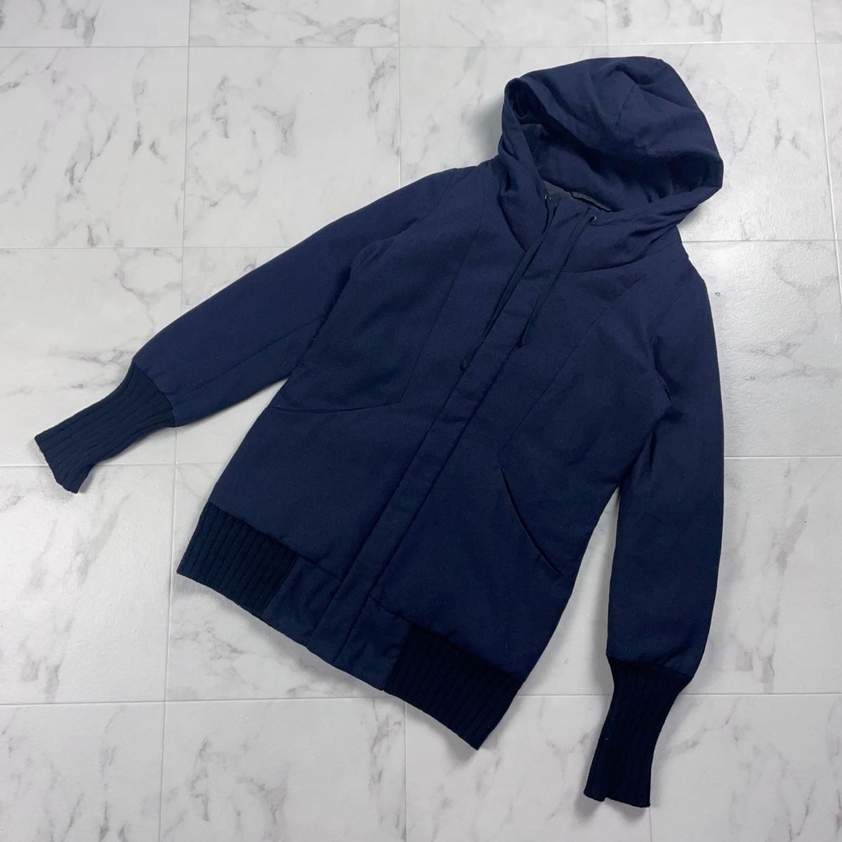 - pas de calais パドカレ リブフーデットダウンジャケット ヘリンボーン サムホール付 ポケット付 レディース ネイビー 紺 サイズ38*XC781