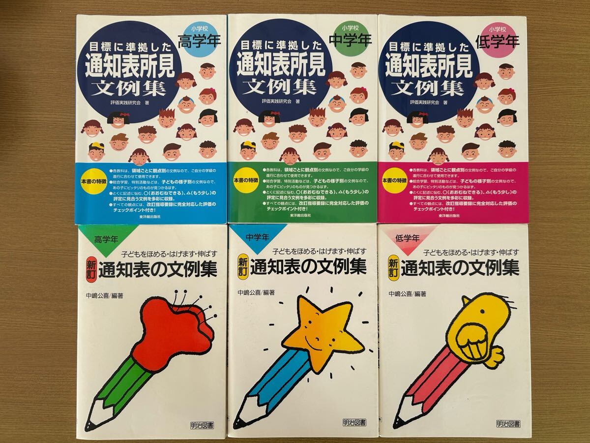 > 通知表文例集★低学年2種★中学年2種★高学年2種★ほめる・はげます・のばす2003年★1997年★定価1220円+税〜1900円+税★USED★送料込