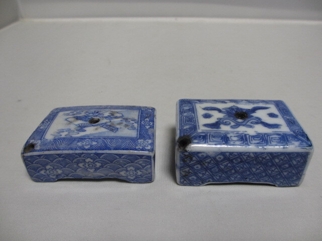 - 書道具 時代物 古い印判染付 水滴 水差し 2ヶ