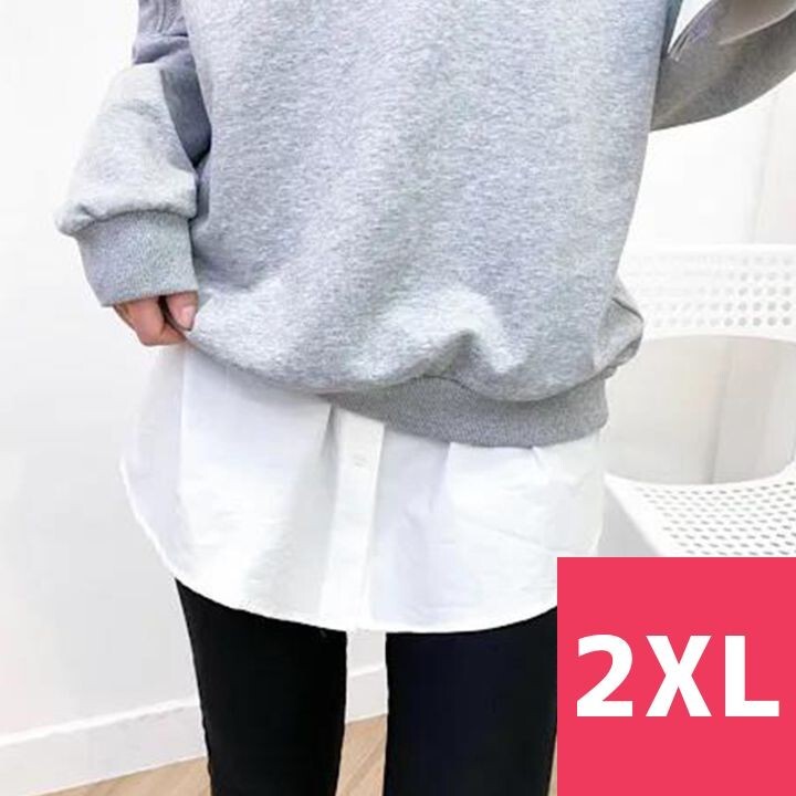 - レディース 付け裾 フェイクレイヤード 2XL 重ね着 シンプル 体型カバー 白