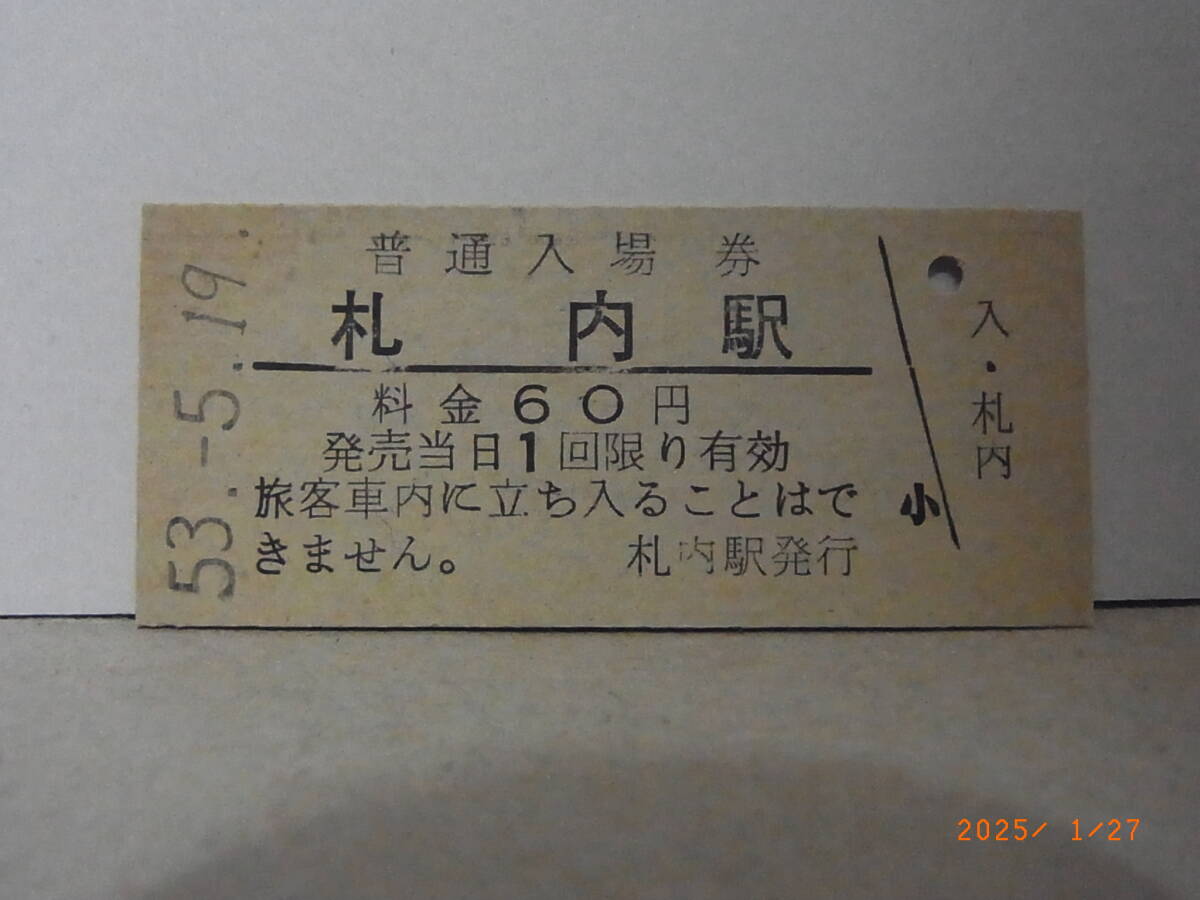 - 国鉄 根室本線 札内駅 60円普通入場券 昭53.5.19 0403 ★送料無料★