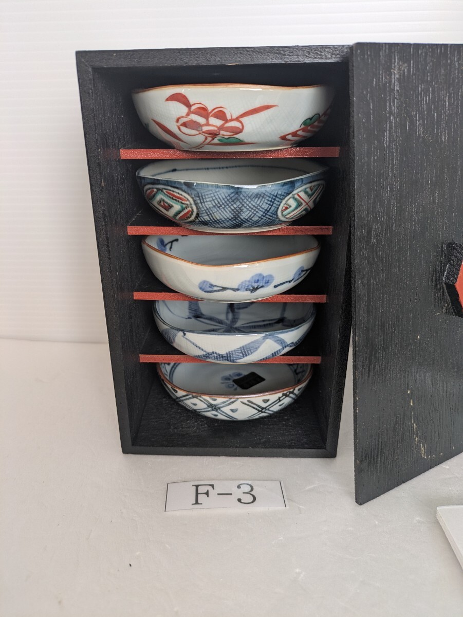 - 古染シリーズ 手描き小皿5枚セット 新品箱入り F−3