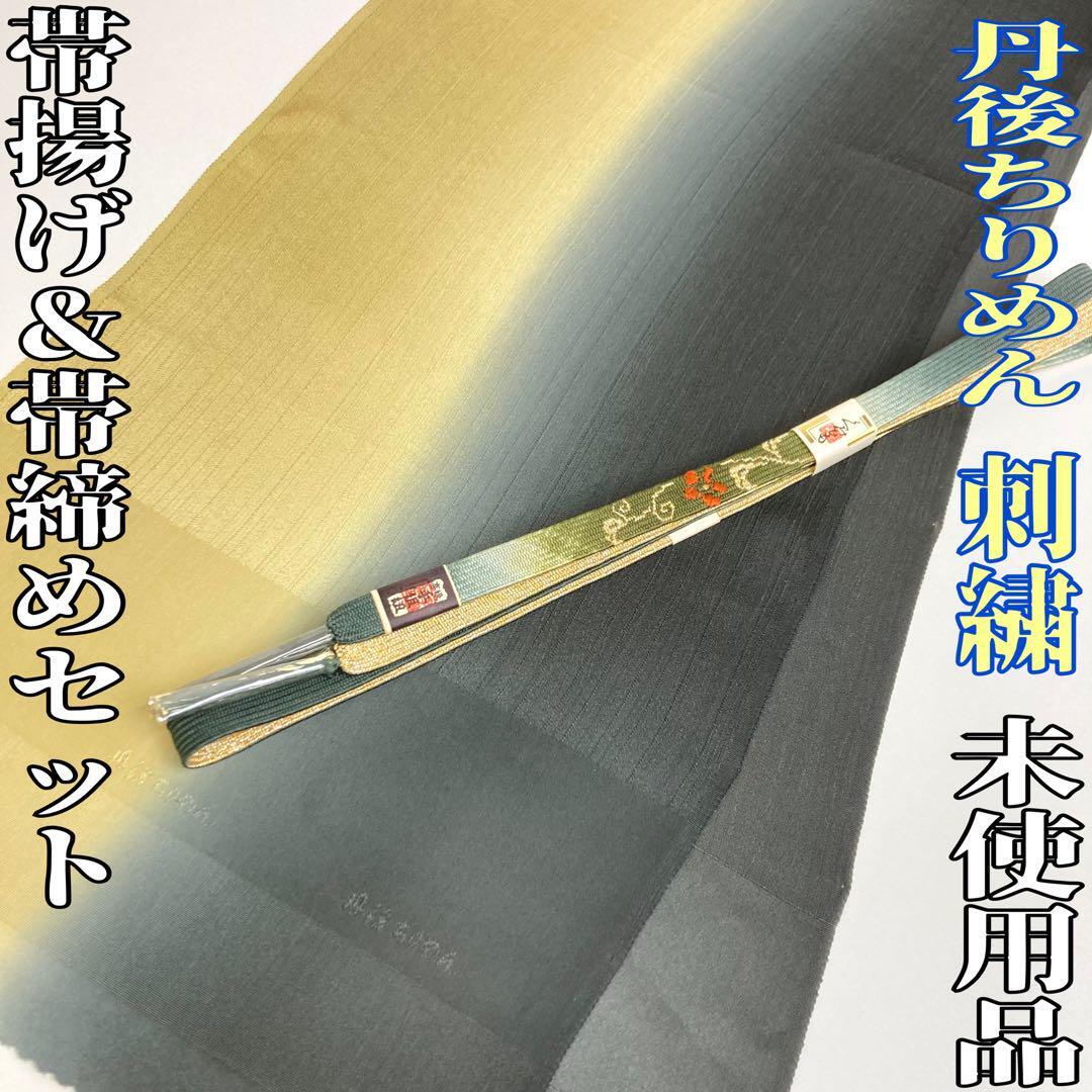 - 【着物と帯 時流】O2550◇正絹 帯揚げ&帯締め◇未使用 丹後ちりめん 刺繍