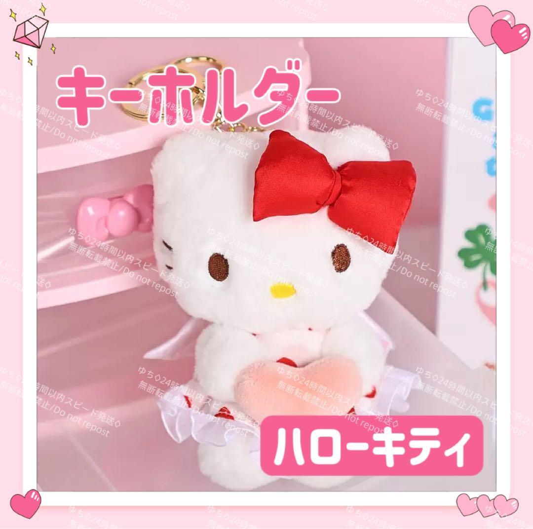 - 海外限定 サンリオ ぬいぐるみ キーホルダー ストラップ チャーム バッグチャーム キーリング ふわふわ 可愛い ハローキティ ①