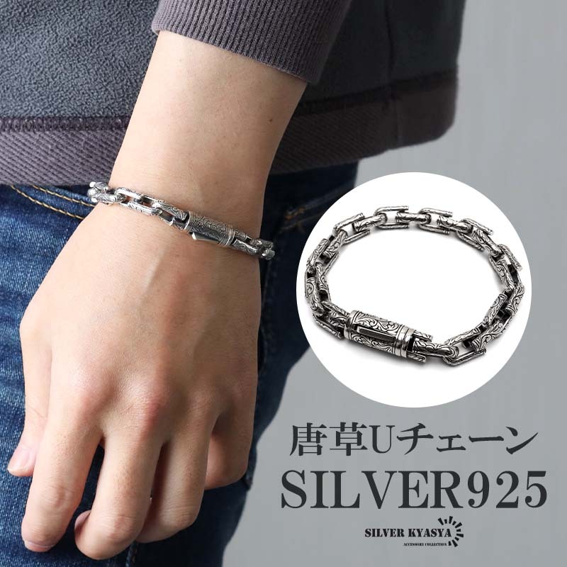 > シルバー925 唐草ブレスレット チェーンブレスレット アラベスク シルバーブレスレット Uチェーン メンズ 男性 金アレ対応