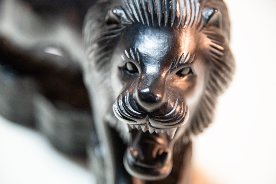 - 【中古品】 木彫り ライオン 百獣の王 文鎮 マーライオン
