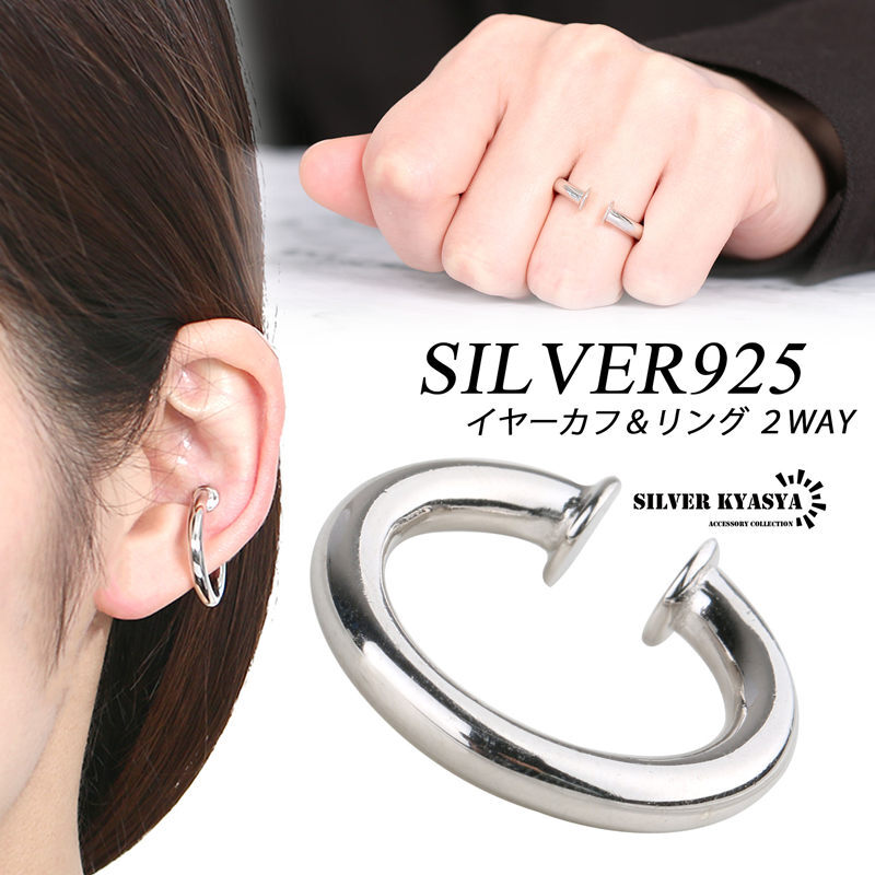 - シルバーリング イヤーカフ 925 小ぶり 細め イヤークリップ 2WAY 金属アレルギー フリー 片耳用 7号