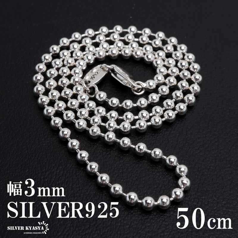 - シルバー925 ボールチェーン ネックレス 幅3mm 50cm ネックレスチェーン メンズ 男性 金属アレルギー対応