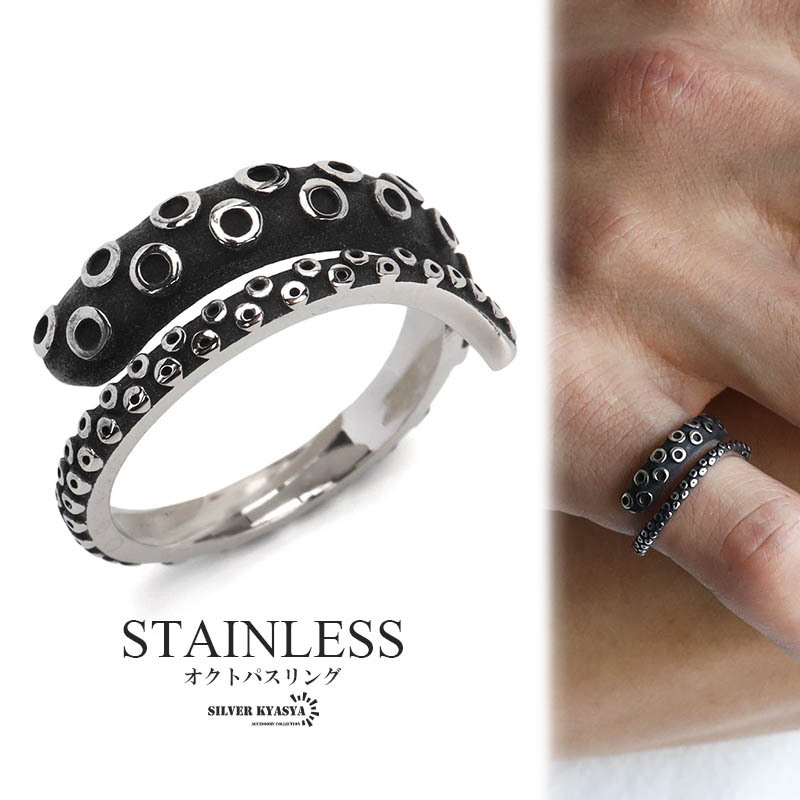 - ステンレス素材 指輪 メンズリング シルバー タコリング 蛸 オクトパスリング 触腕 遊び心 存在感
