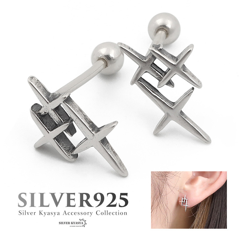 > シルバー925 スタッドピアス キラキラ 金属アレルギー 両耳用 2点 シルバー イヤリング レディースピアス メンズ
