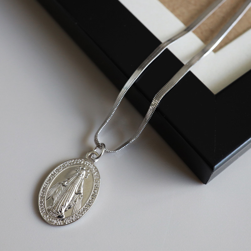 - シルバー925 マリアネックレス スネークチェーン 不思議のメダイ コイン ネックレス 女性 シルバー 金属アレルギー対応