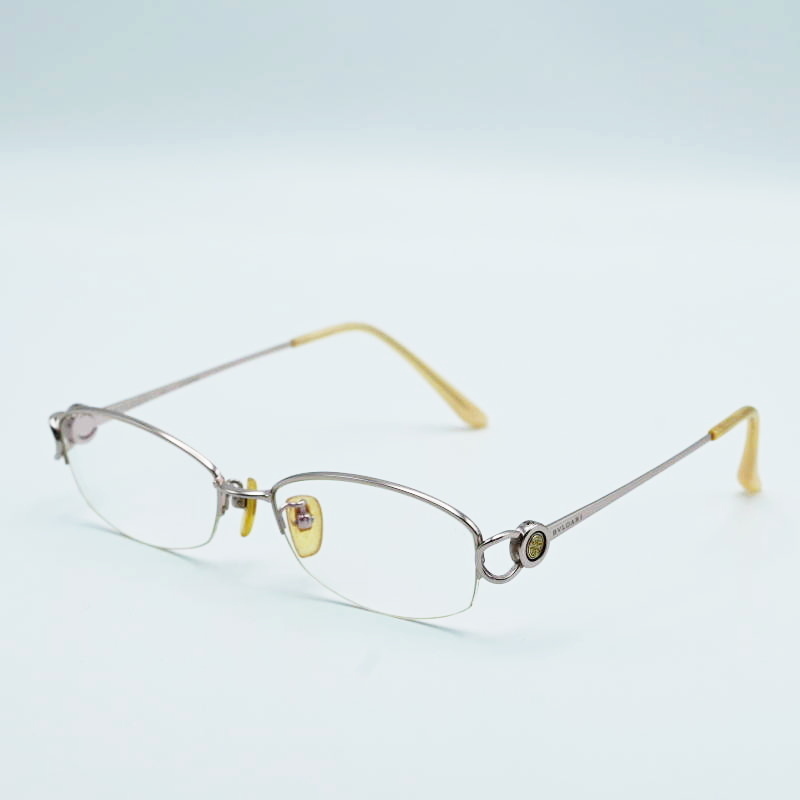 > T01-k011 BVLGARI ブルガリ サイドメレダイヤ ハーフリム メタルメガネ 度入り 2065TG