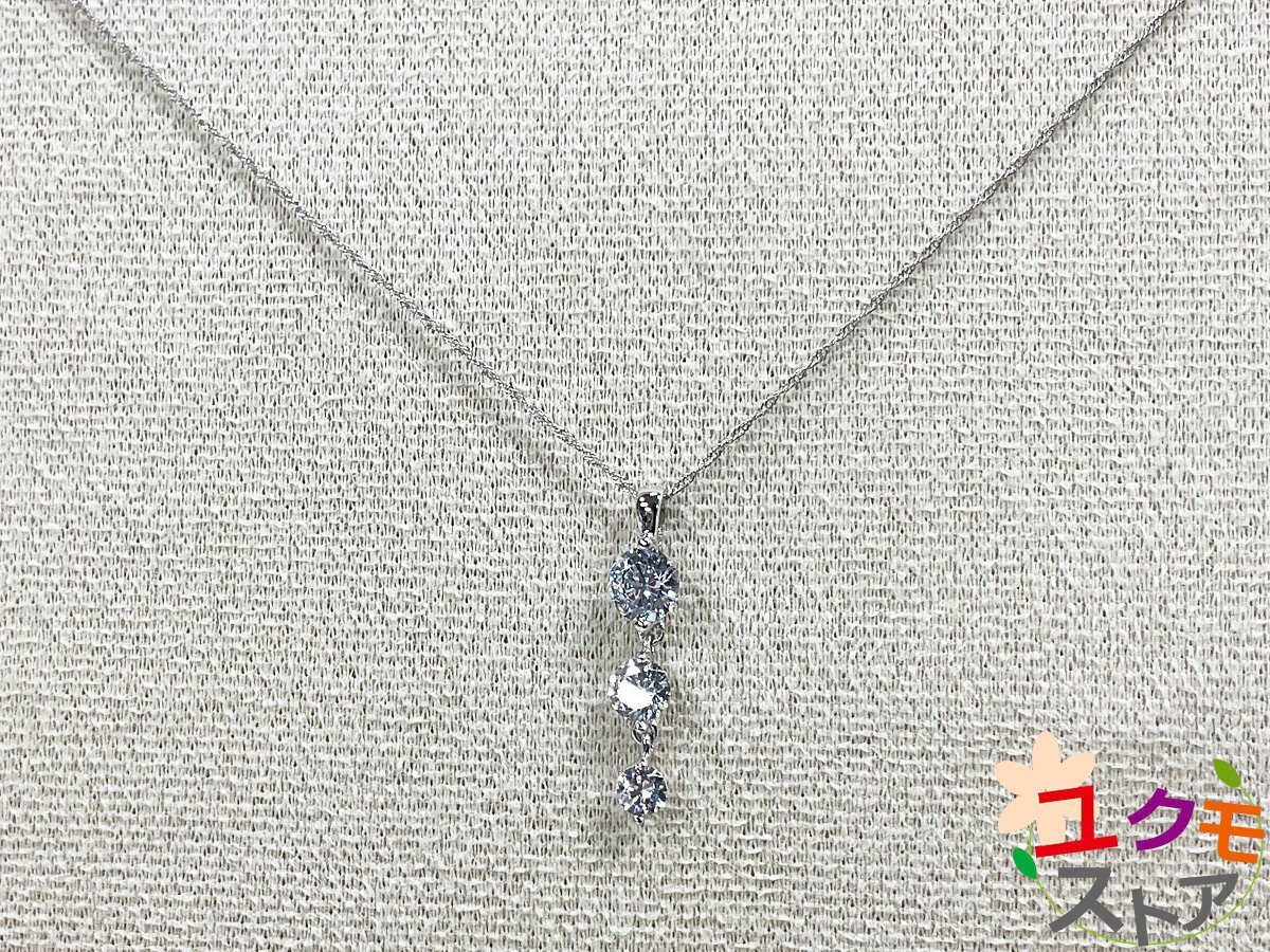 > 【送料無料】K18WG ホワイトゴールド キュービックジルコニア 2.0ct ネックレス ペンダント K18 18金 40cm トリロジー アジャスター付き