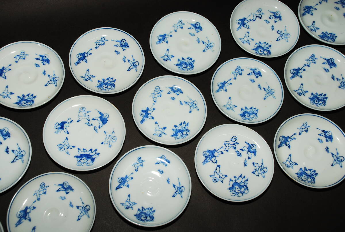 - 京焼 清水六兵衛 造 手塩皿 16枚 染付 唐子文 箱あり