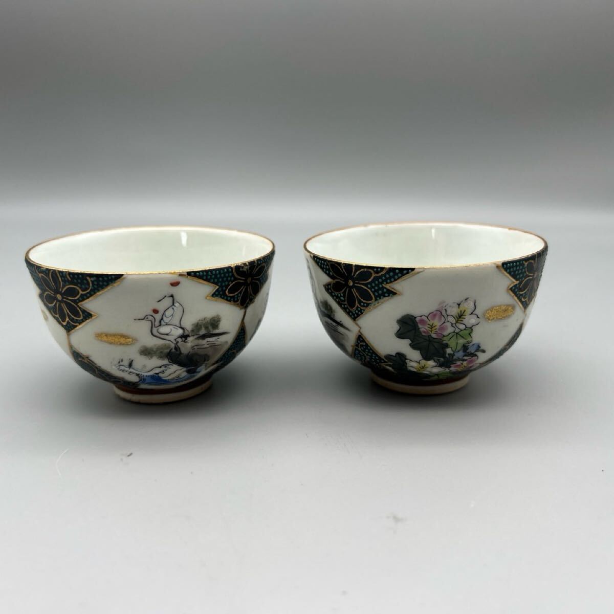 - 九谷焼 煎茶碗 茶碗 陶磁器 染付 ぐい呑み 時代物 2客