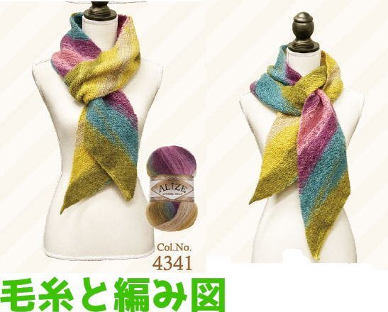 - 編み物キット 新品 アンゴラゴールドバティックで編む斜めガーター編みのロングマフラー 棒針編み 無料編み図 ショール ストール
