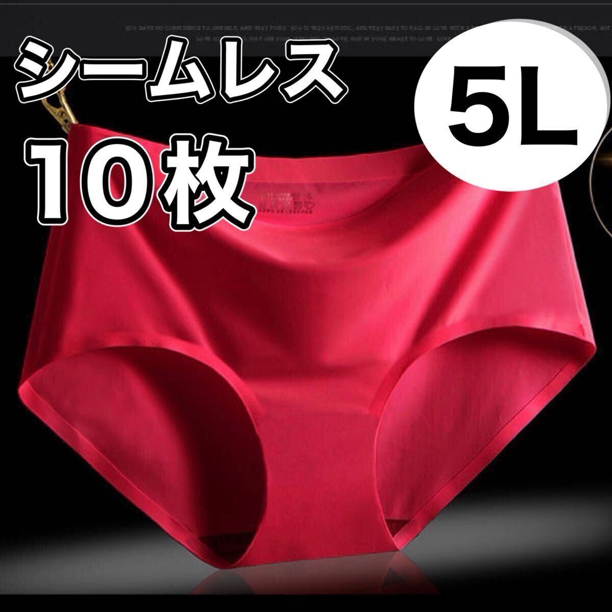 - シームレス ショーツ 10枚セット レッド 赤 5L まとめ売り 4XL 大きいサイズ レディース 下着 速乾 伸縮 コットン 綿 パンツ XXXXL