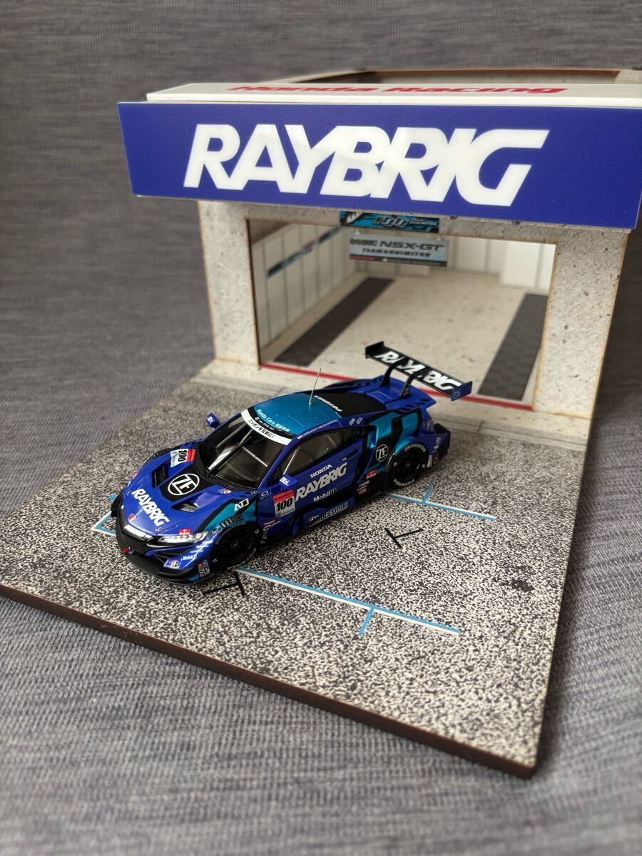 - 絶版 エブロ 1/43 PIT base ジオラマ スーパーGT RAYBRIG ver ピットガレージ ボックス ホンダ NSX レイブリッグ TEAM KUNIMITSU スパーク