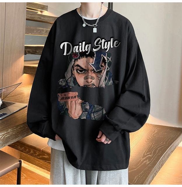 - メンズトレーナー メンズ トップス スウェット秋春服 クルーネック プリント ファッション 2023 新作 ブラック 5XL