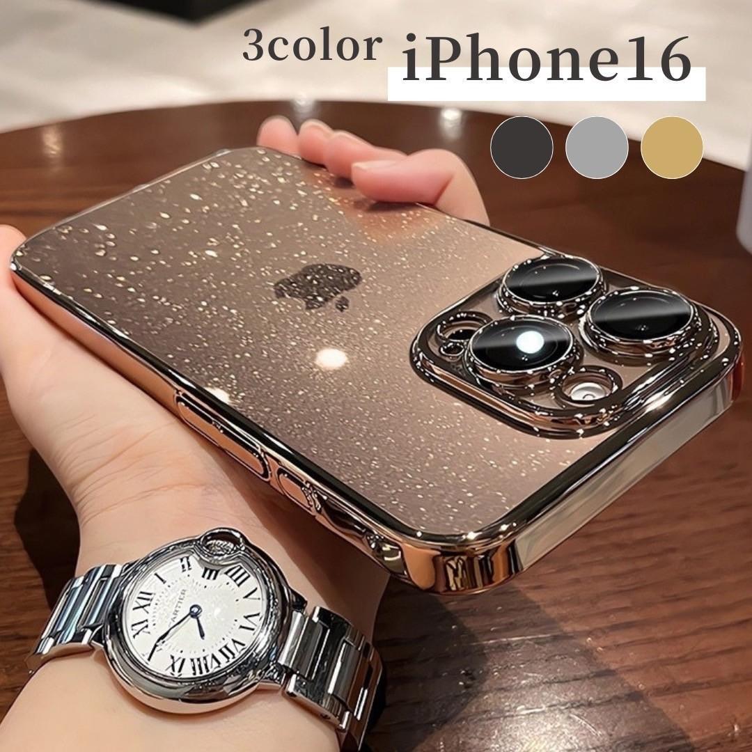 - iPhone16 ケース クリアメタリック カメラレンズ保護 キラキラ ゴールド