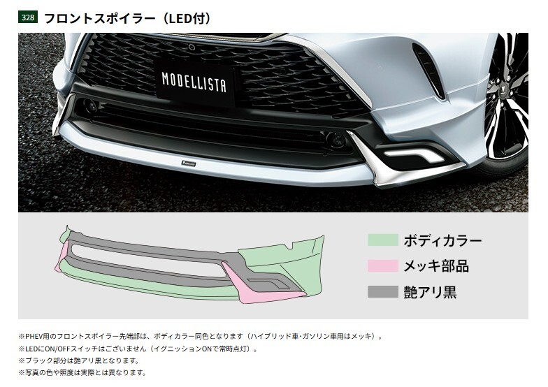 - モデリスタ ハリアー 80系 GRAN BLAZE STYLE for PHEV フロントスポイラー(LED付) プレシャスブラックパール(219) 塗装済品