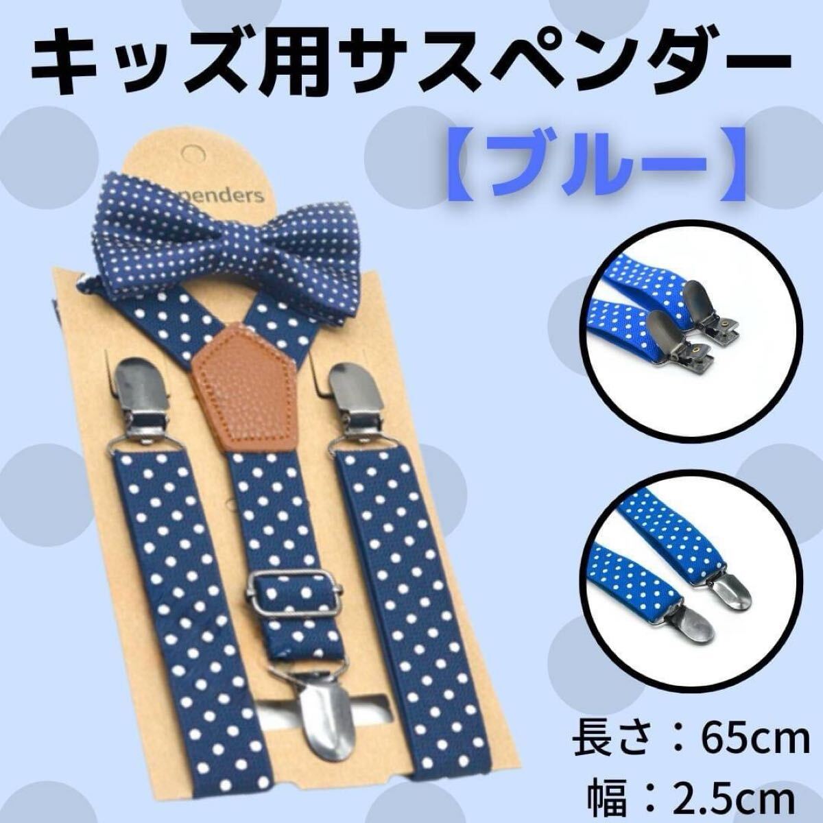 - キッズ サスペンダー ブルー ドット柄 蝶ネクタイ リボンタイ 男の子 女の子