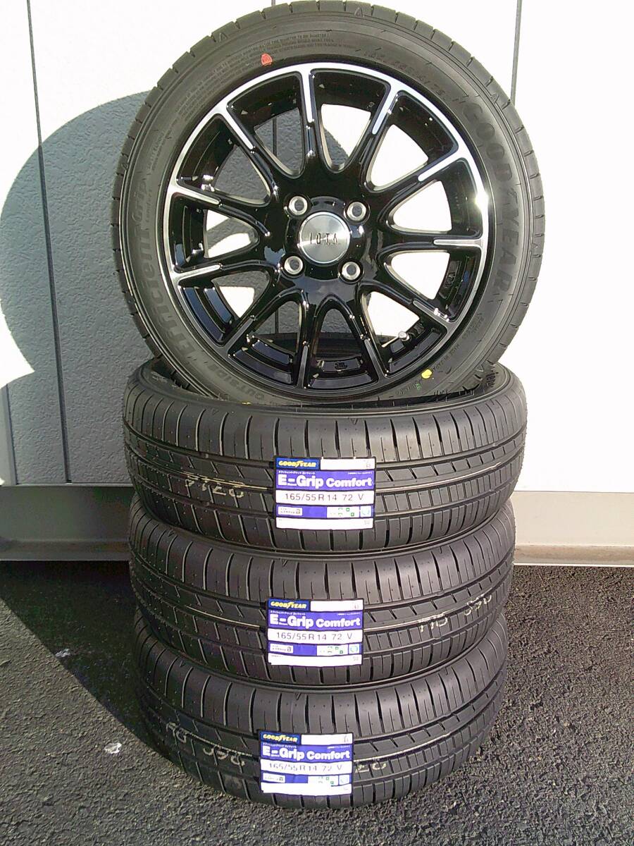 > 新品セット☆グッドイヤー☆165/55R14☆ブラックポリッシュホイルセット☆N-BOX・タント・サクラ等☆Hm