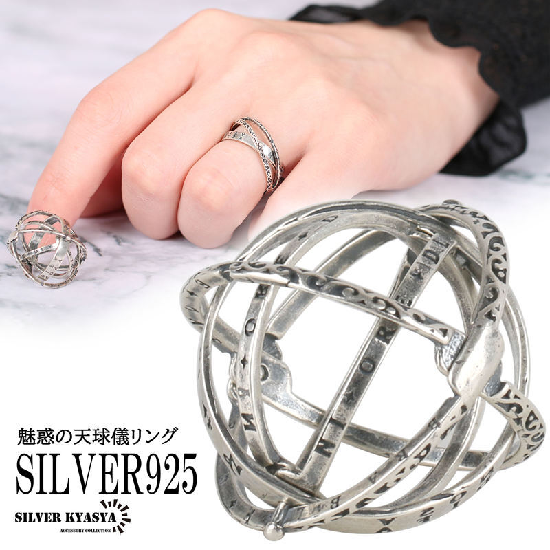 > (12号) シルバー925 リング シルバーリング 指輪 天体 唐草 太陽 月 惑星 天球儀 ギミックリング 動く 変形 12号
