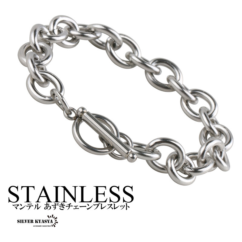 > (12mm、21cm) ステンレス チェーンブレスレット マンテル ブレスレット シルバー 銀色 チェーンブレスレット シンプル