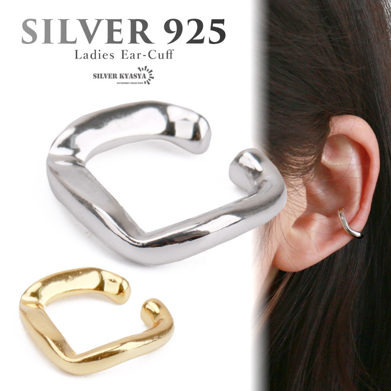 > (シルバー) アンティーク調 楕円 イヤーカフ シルバー925 18k 18金 イヤークリップ シルバー ゴールド 片耳用