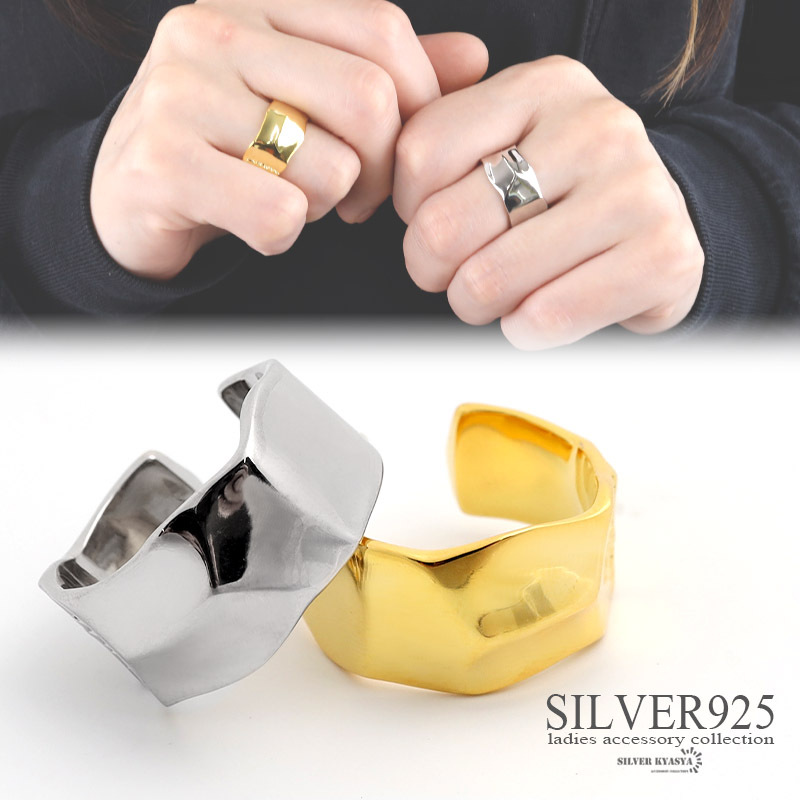 - (ゴールド) シルバー925リング 18K GP シルバー ゴールド ニュアンス 幾何学 こなれ感 お洒落 指輪 オープンリング