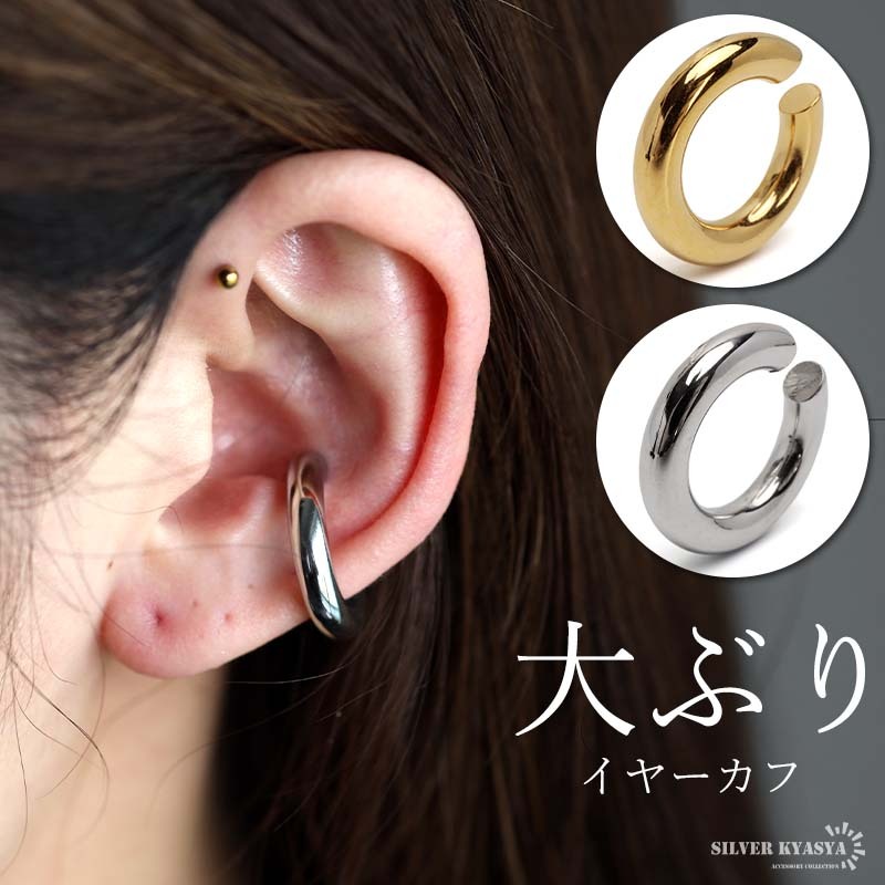 > (ゴールド) 大ぶり シンプル イヤーカフ ステンレス チャンキーフープピアス 太幅 ゴールド シルバー 片耳 金属アレルギー対応