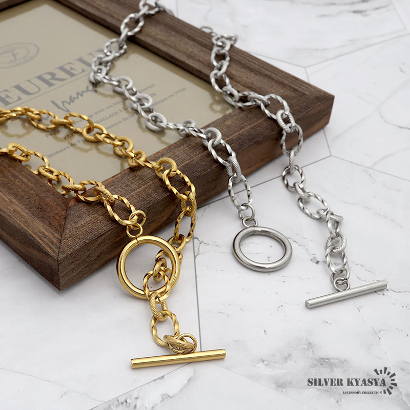 - (シルバー、40cm) レディースネックレス ステンレス 18k マンテル シルバー ゴールド ツイスト ハンドメイド