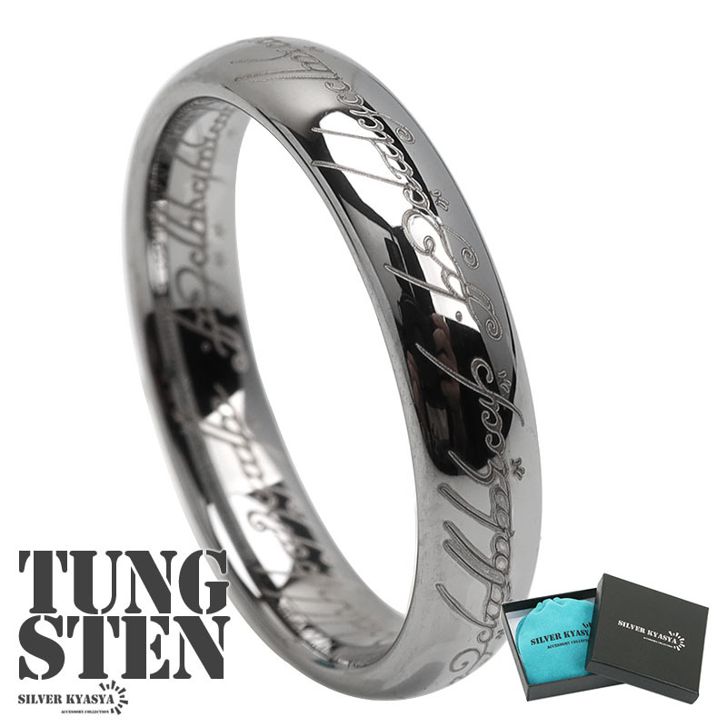 - (22号) タングステン 火文字リング 幅4mm 細身 指輪 リング シルバー メタリック 専用BOX付属