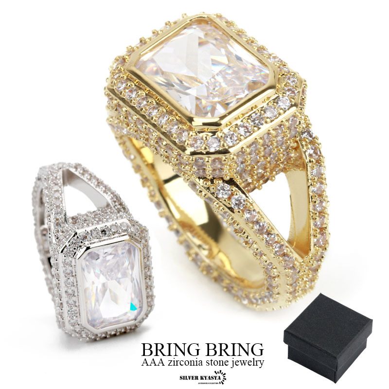 - (シルバー、21号) 印台リング CZ 18K GP gold 爪留め パヴェ スクエア 指輪 ゴールド シルバー 専用BOX