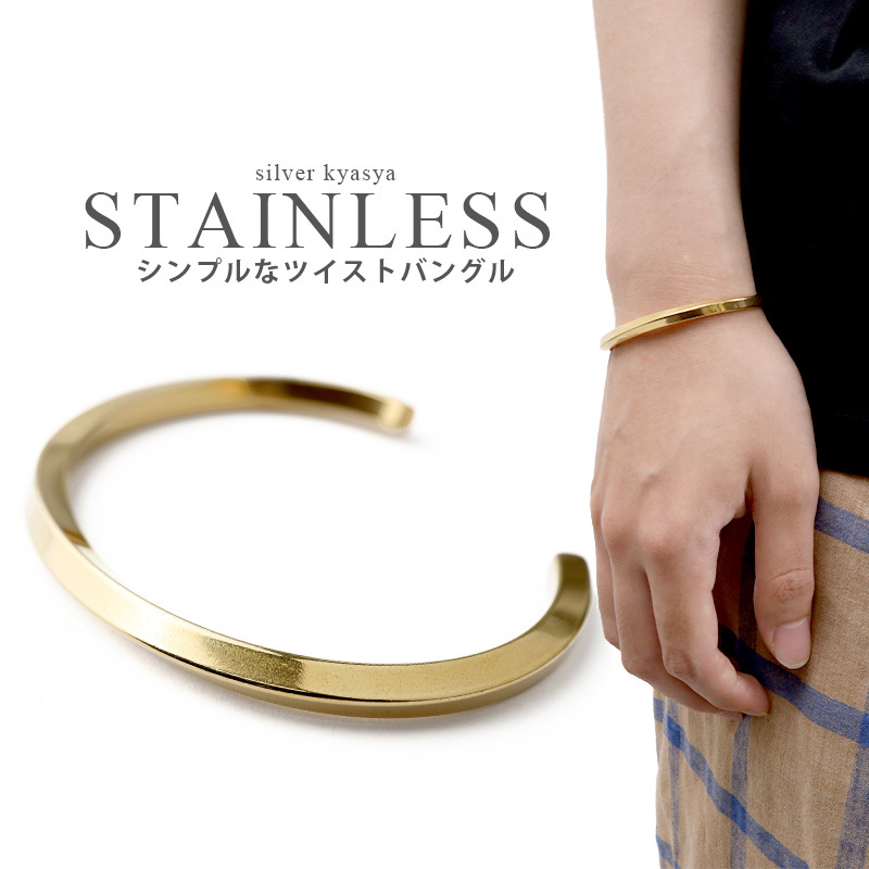 > (Lサイズ) ステンレス ツイスト バングル ゴールド ねじり 腕輪 gold ゴールドバングル ステンレスバングル