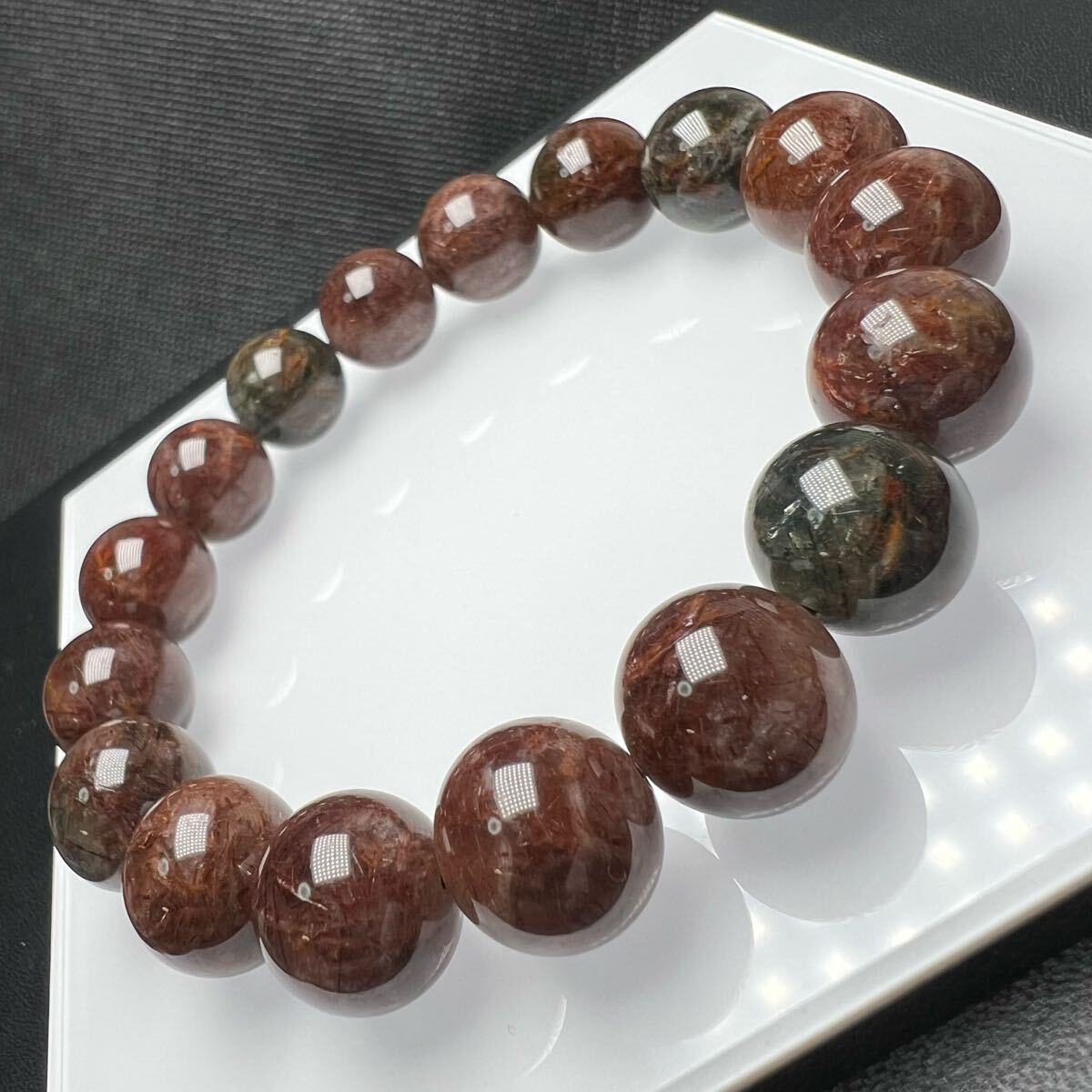 - 【72061】ブロンズルチルクォーツ 12.8mm ブレスレット グリーンルチルクォーツ 天然石