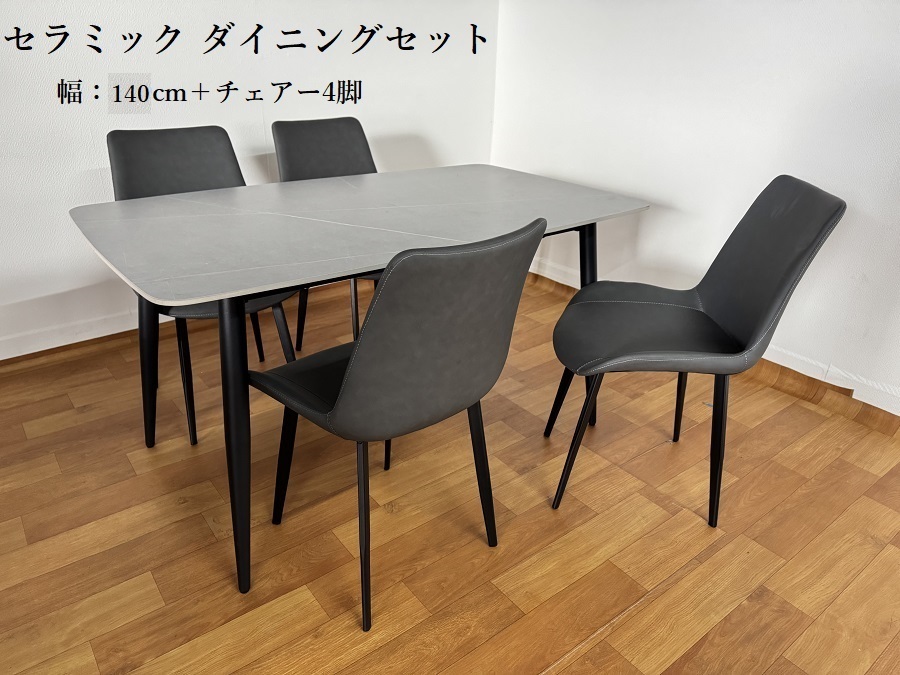 ダイニングセット セラミックテーブル 幅140cm 4人掛け 4人 グレー/グレー 4脚セット テーブルセット エンジン 1 送料無料拍卖