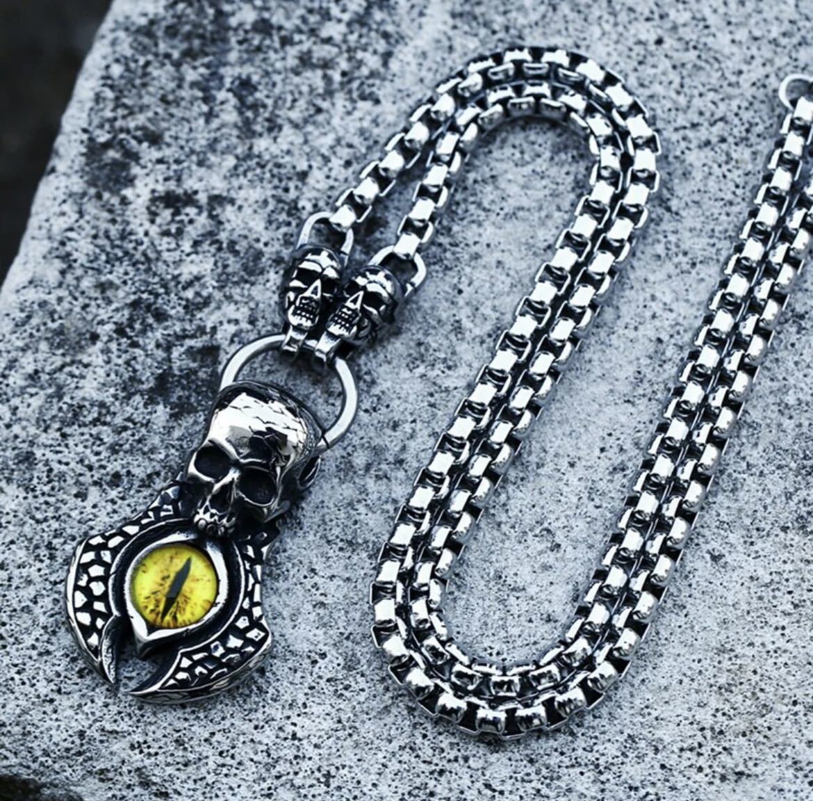 - スカルネックレス ステンレス アクセサリー ネックレス ペンダント 髑髏 骸骨 スカル ドクロ 目 眼 ジュエリー クール パンク ロック 2810